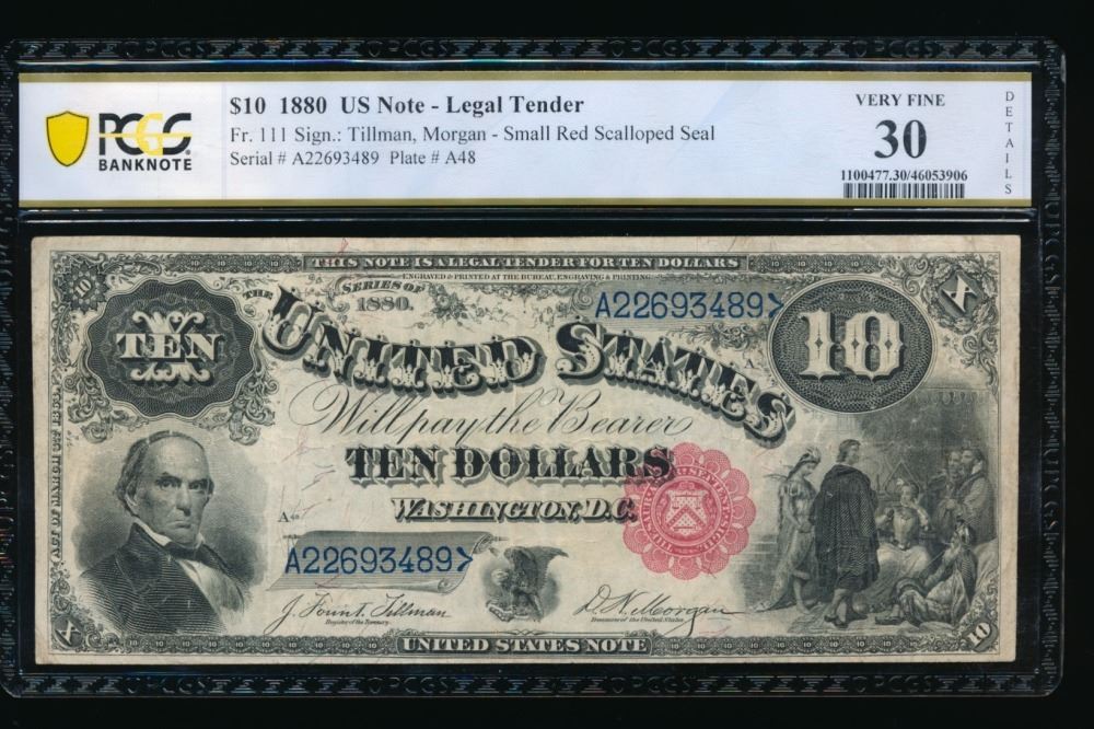 One 1880 $10 Jackass Legal Tender Note PCGS 30.