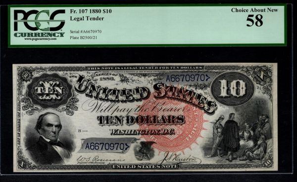 One 1880 $10 Jackass Legal Tender Note PCGS 58.