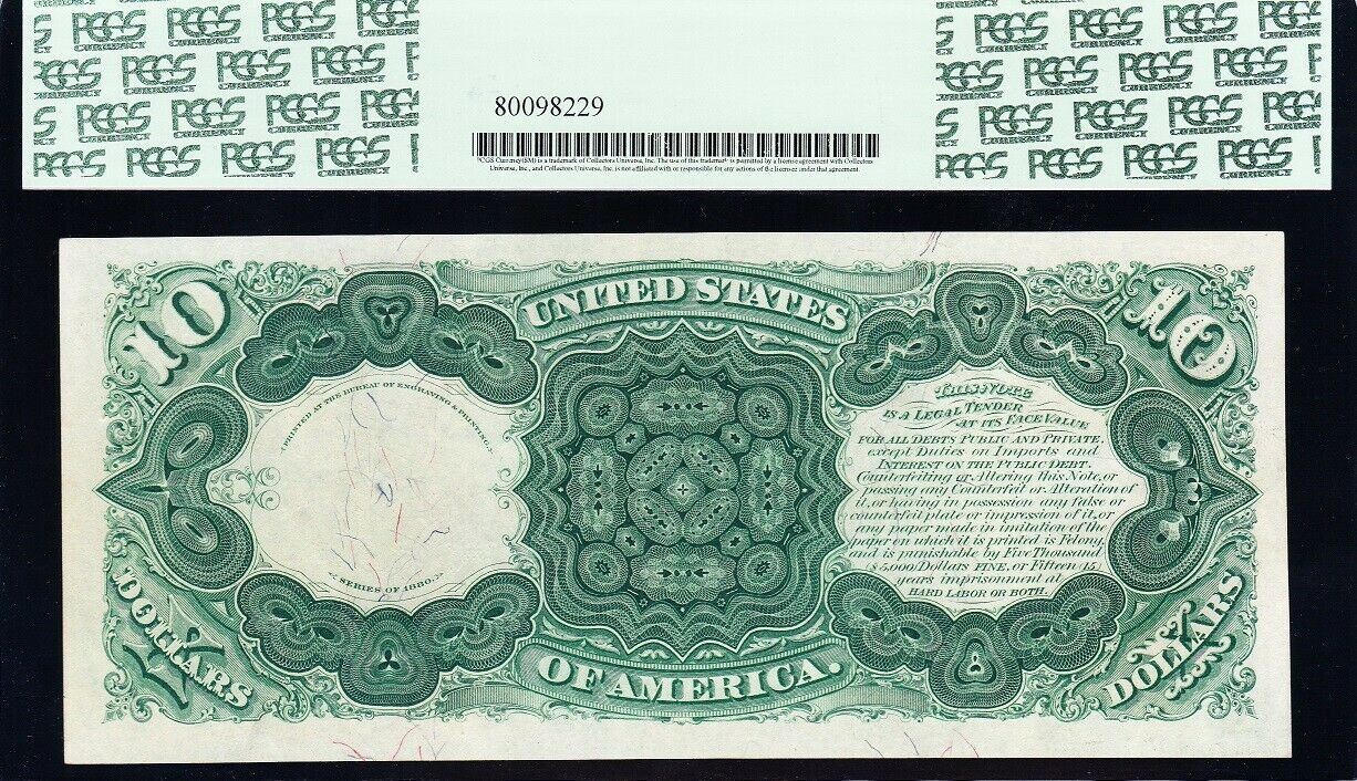 One 1880 $10 Jackass Legal Tender Note PCGS 66PPQ.