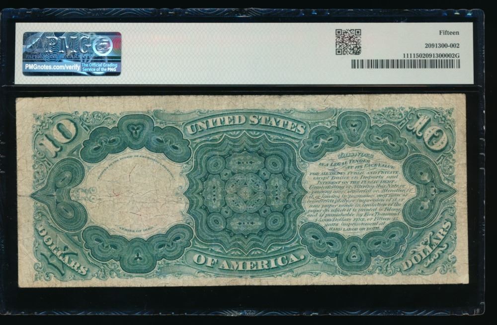 One 1880 $10 Jackass Legal Tender Note PMG 15.