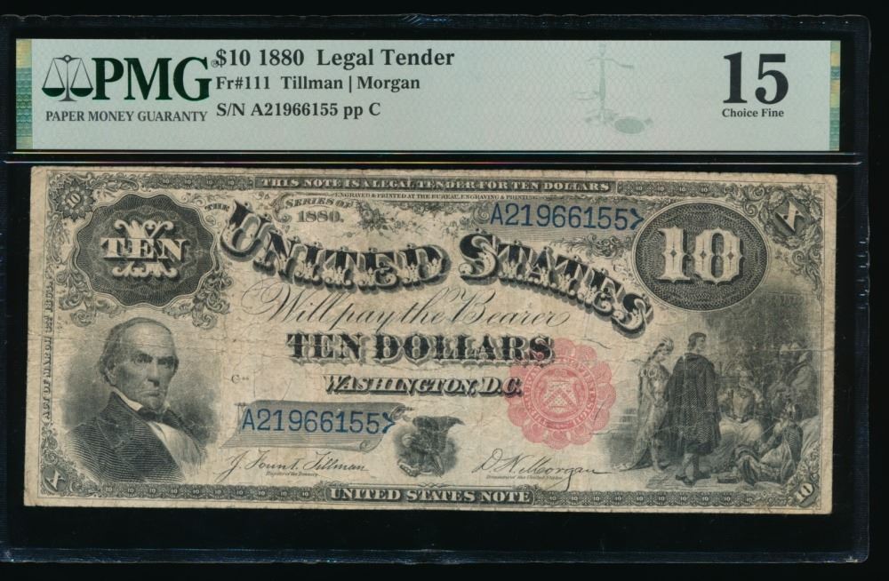 One 1880 $10 Jackass Legal Tender Note PMG 15.