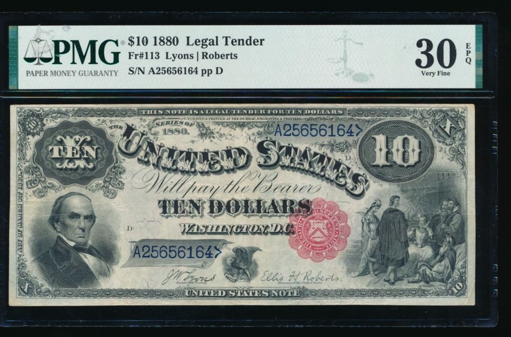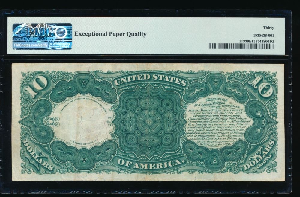 One 1880 $10 Jackass Legal Tender Note PMG 30EPQ.