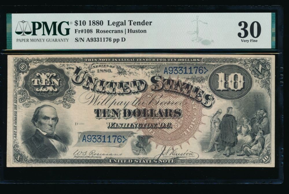 One 1880 $10 Jackass Legal Tender Note PMG 30.