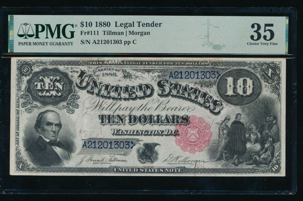 One 1880 $10 Jackass Legal Tender Note PMG 35.
