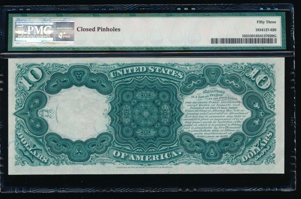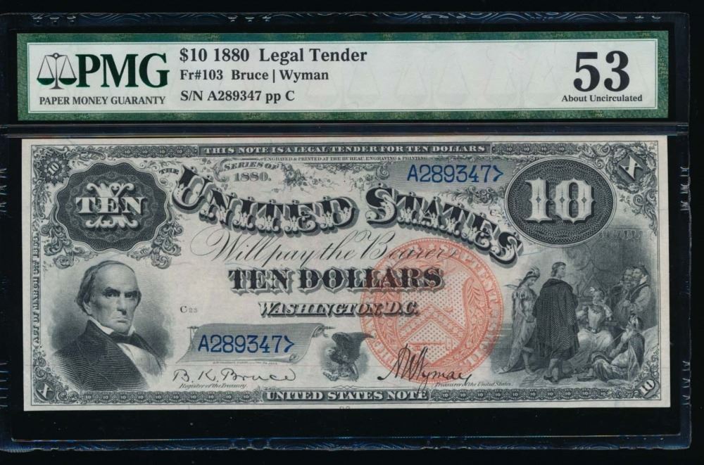 One 1880 $10 Jackass Legal Tender Note PMG 53.