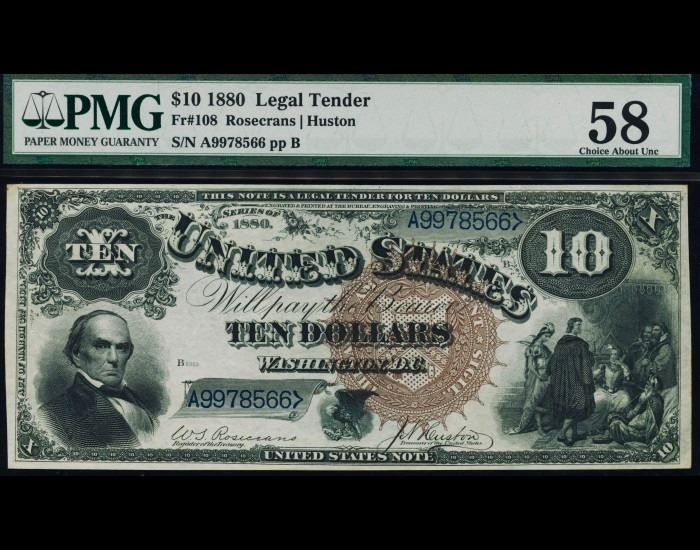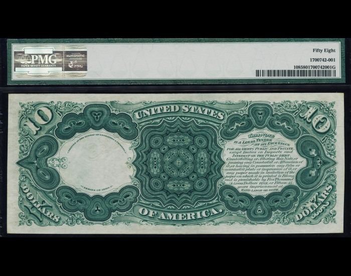 One 1880 $10 Jackass Legal Tender Note PMG 58.