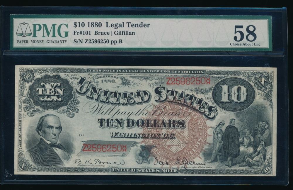 One 1880 $10 Jackass Legal Tender Note PMG 58.