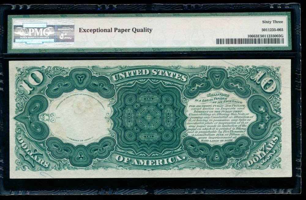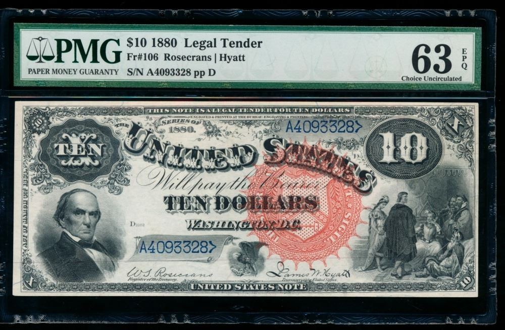 One 1880 $10 Jackass Legal Tender Note PMG 63EPQ.