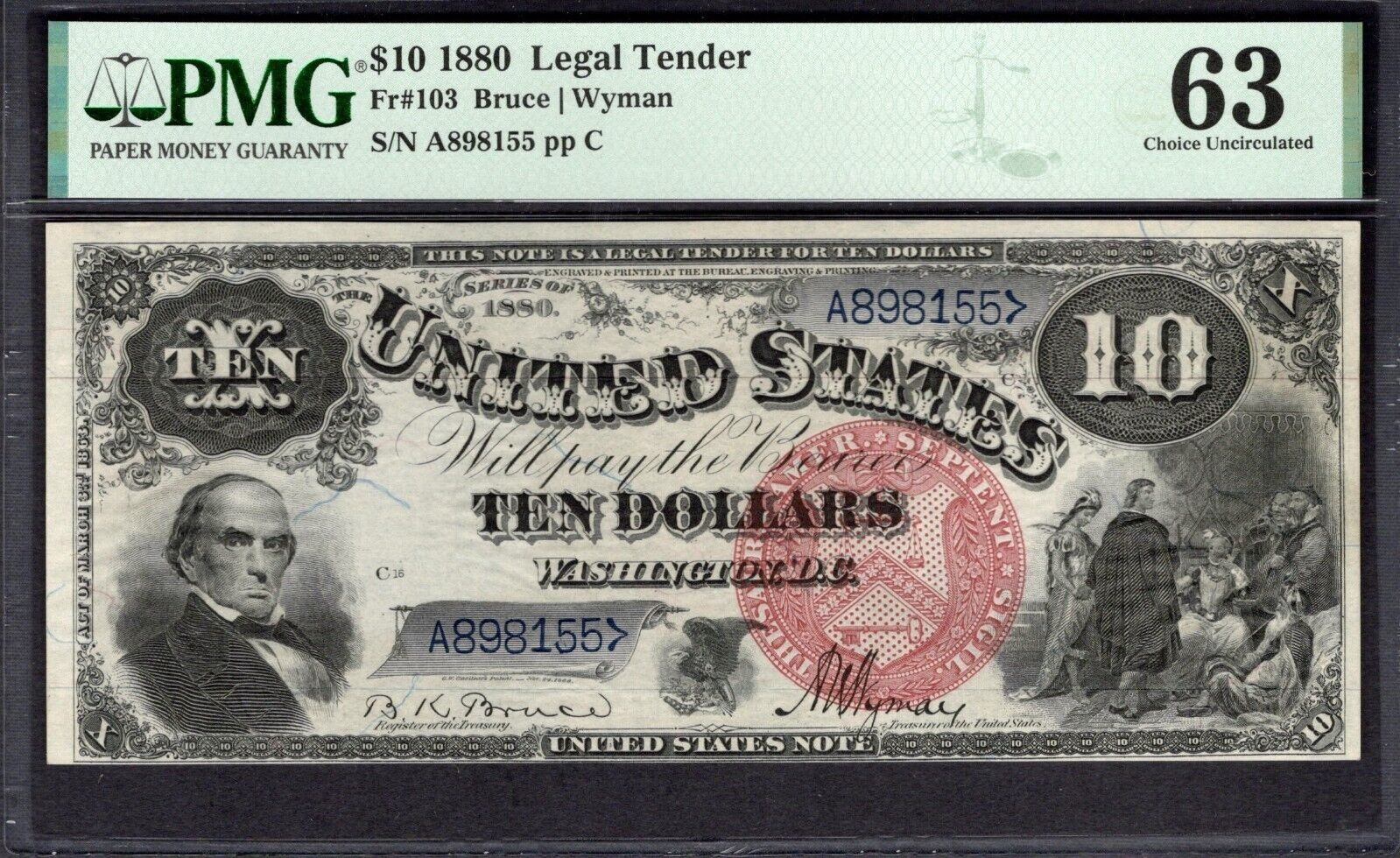 One 1880 $10 Jackass Legal Tender Note PMG 63.