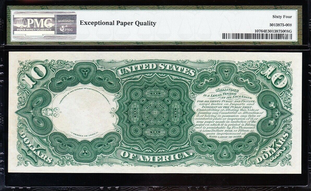 One 1880 $10 Jackass Legal Tender Note PMG 64EPQ.