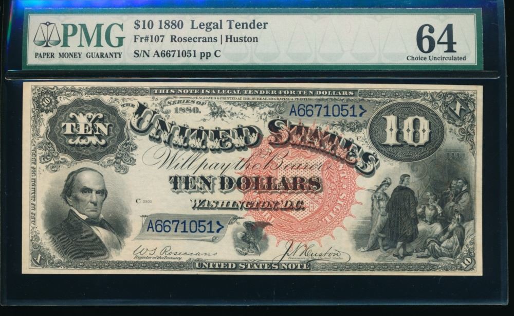 One 1880 $10 Jackass Legal Tender Note PMG 64.