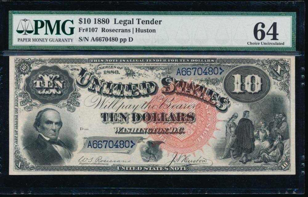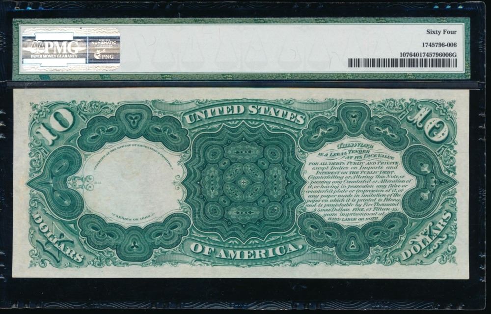 One 1880 $10 Jackass Legal Tender Note PMG 64.