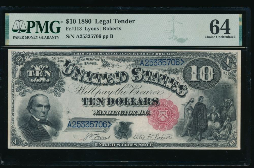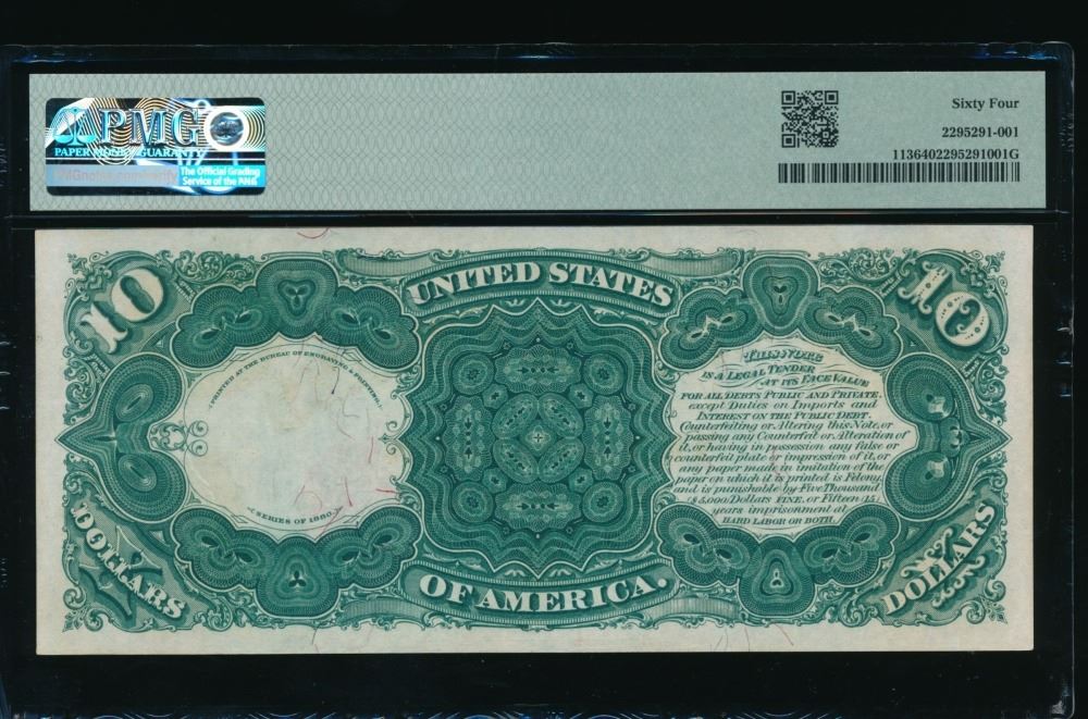 One 1880 $10 Jackass Legal Tender Note PMG 64.