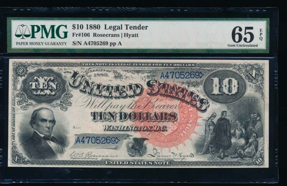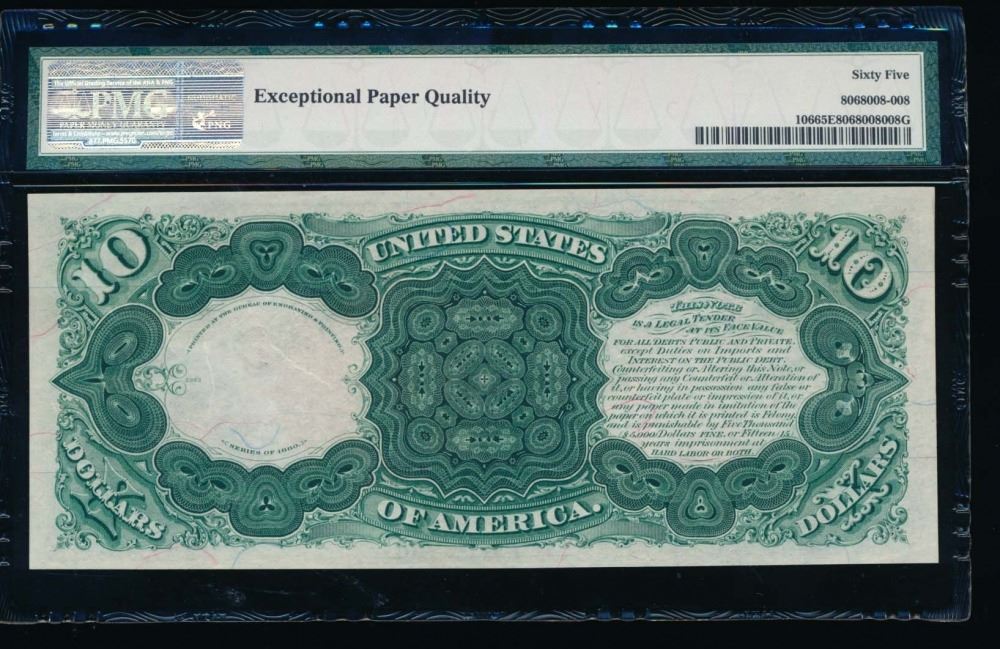 One 1880 $10 Jackass Legal Tender Note PMG 65EPQ.