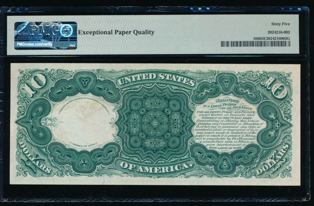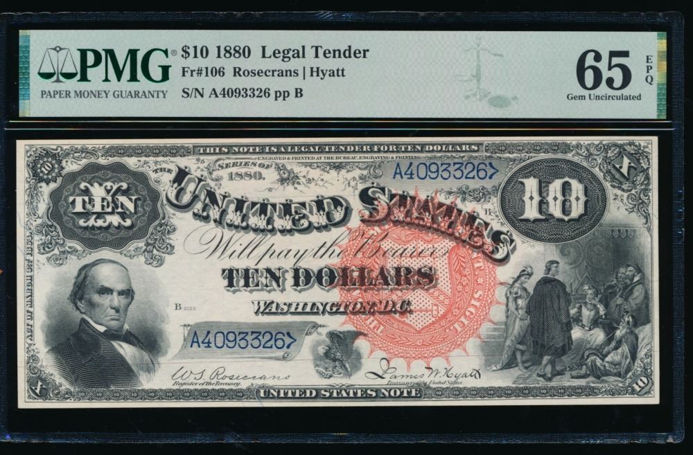 One 1880 $10 Jackass Legal Tender Note PMG 65EPQ.