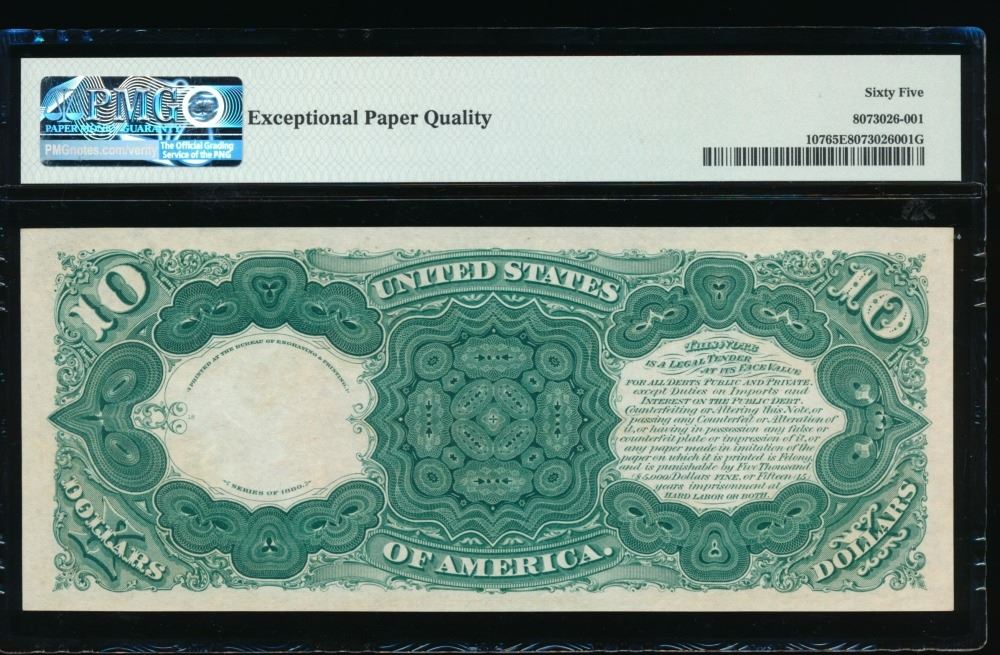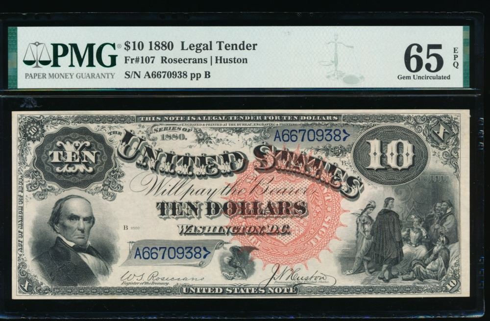 One 1880 $10 Jackass Legal Tender Note PMG 65EPQ.