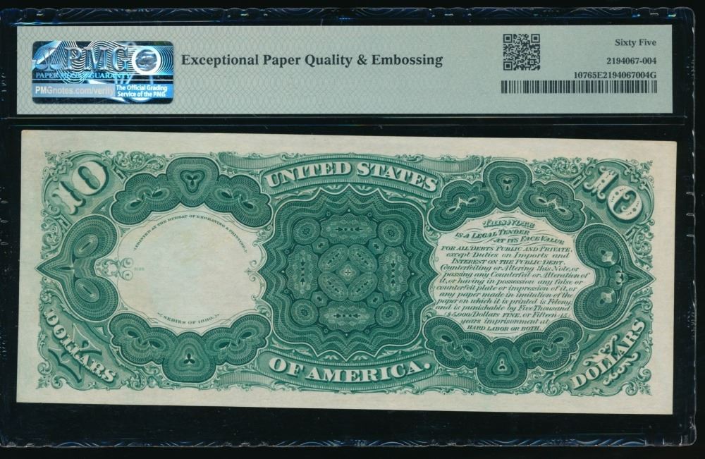 One 1880 $10 Jackass Legal Tender Note PMG 65EPQ.