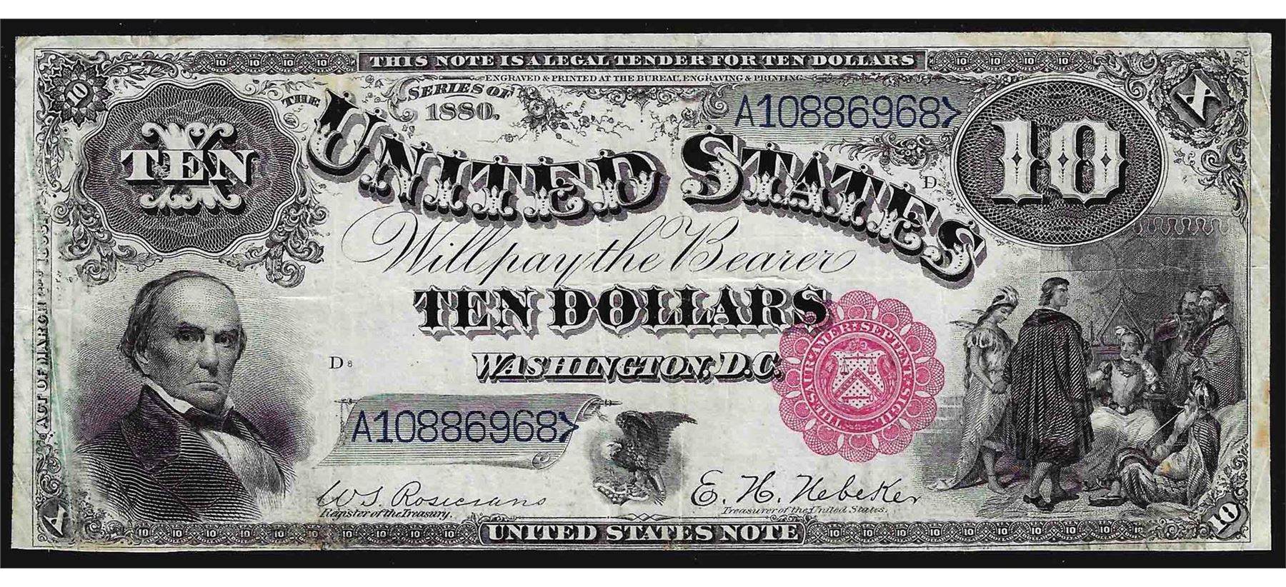 One 1880 $10 Jackass Legal Tender Note.