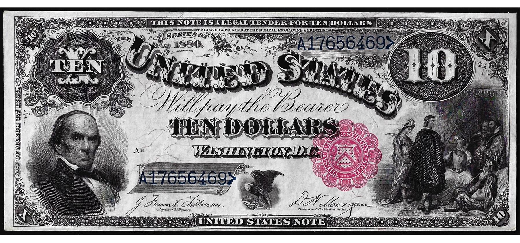 One 1880 $10 'Jackass' Legal Tender Note.