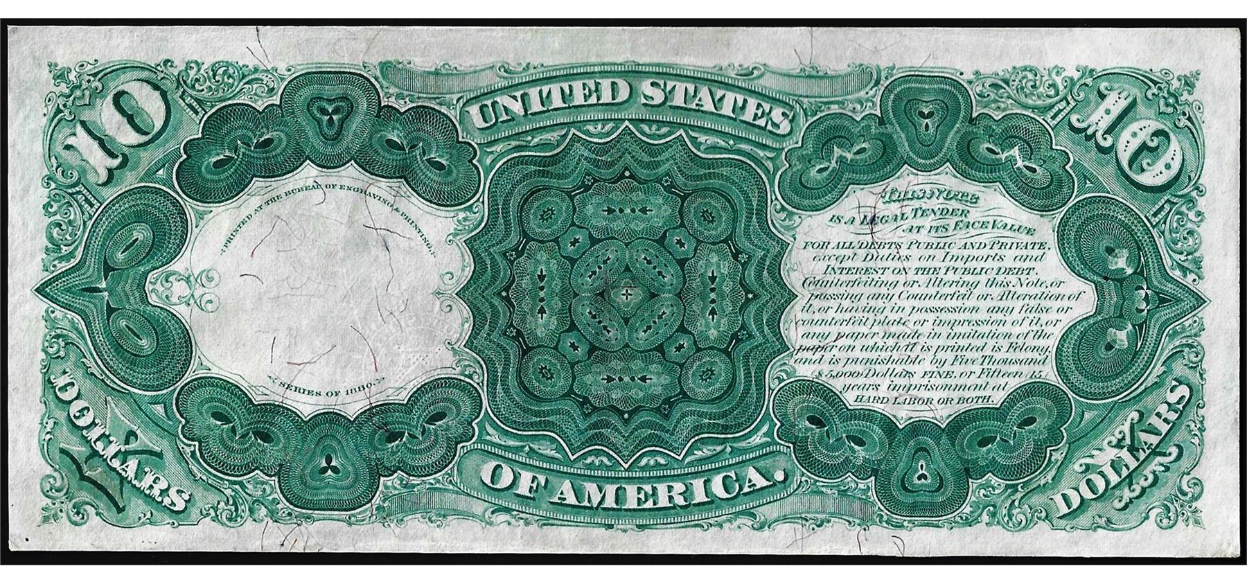 One 1880 $10 'Jackass' Legal Tender Note.