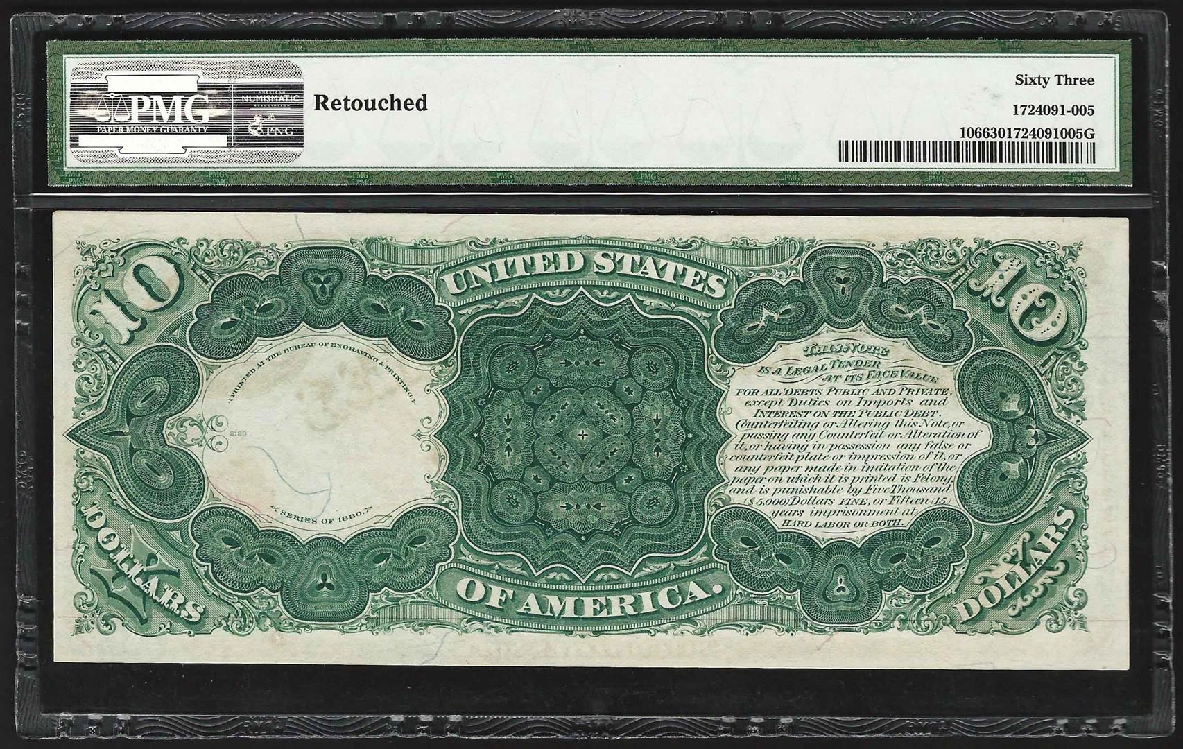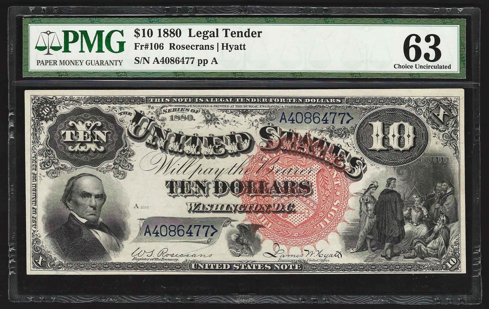 One 1880 $10 Legal Tender Note Fr. 106 PMG Choice Uncirculated 63. PMG Certified.