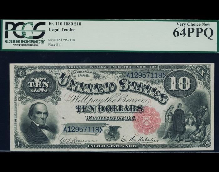 One 1880 $10 Legal Tender Note PCGS 64PPQ.