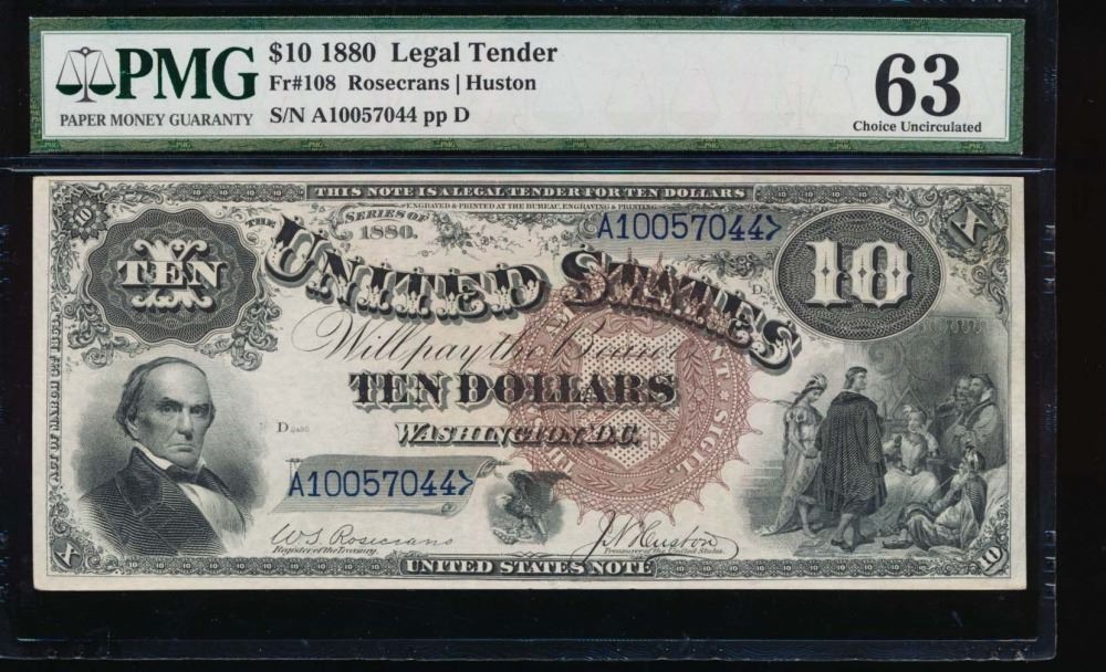 One 1880 $10 Legal Tender Note PMG 63.