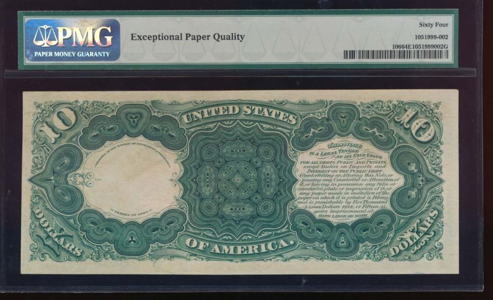 One 1880 $10 Legal Tender Note PMG 64EPQ.