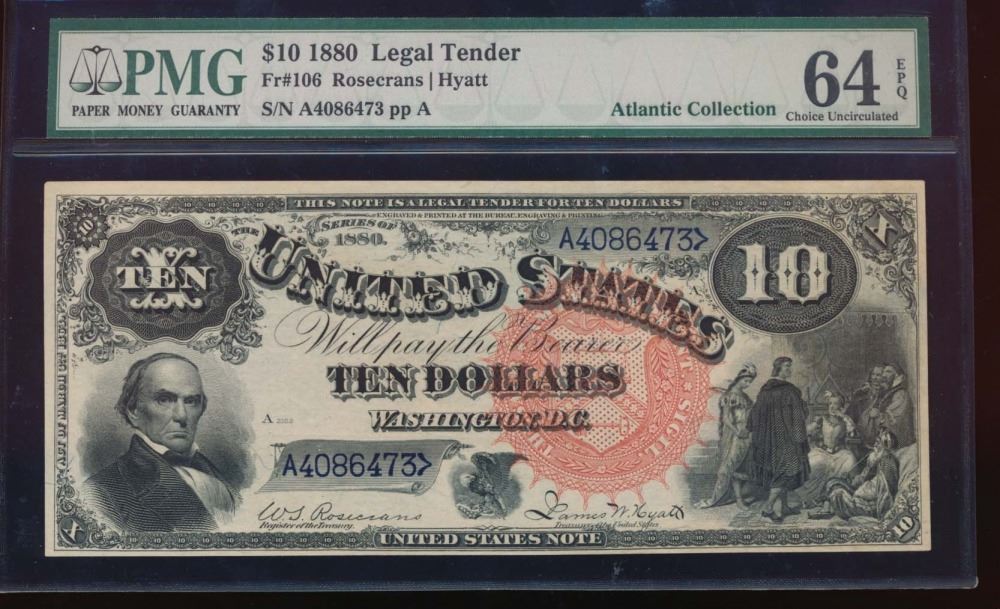 One 1880 $10 Legal Tender Note PMG 64EPQ.