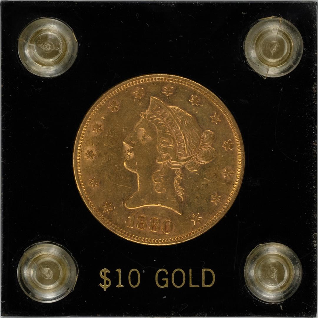 One 1880 $10 Liberty Head Eagle Gold Coin.