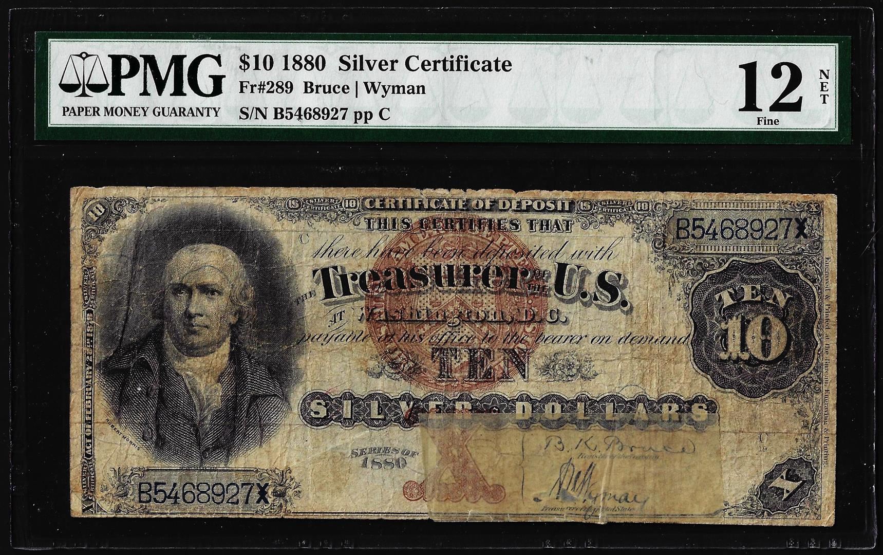 One 1880 $10 Silver Certificate Note Fr.289 PMG Fine 12 Net. PMG Certified.
