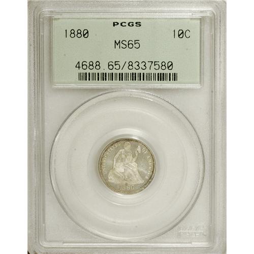1880 10C MS65 PCGS. Partially prooflike fields highlig