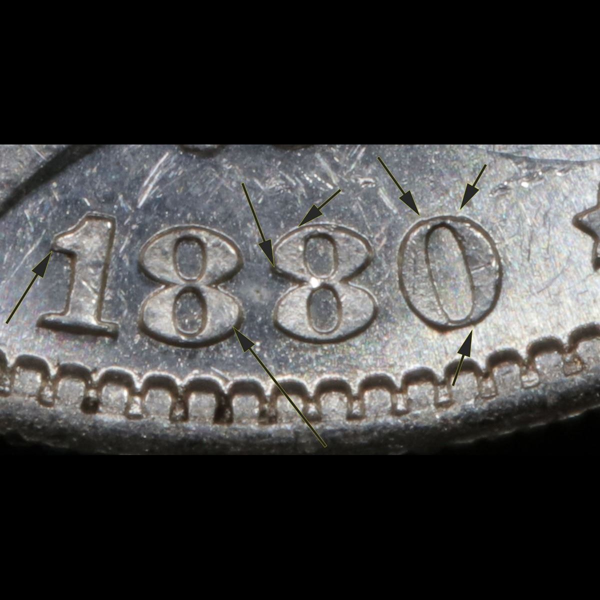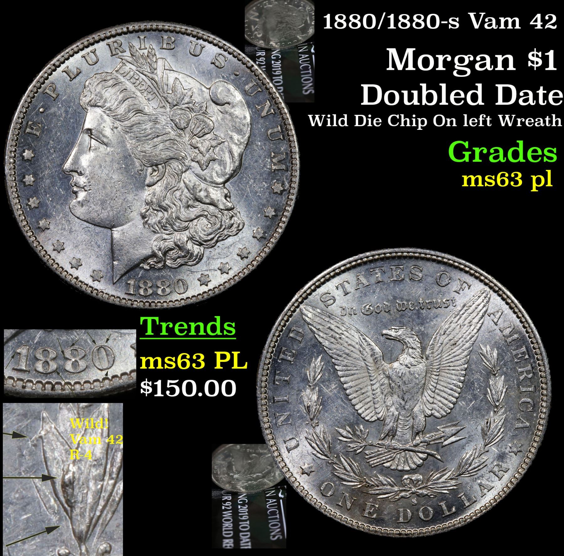1880/1880-s Vam 42 Doubled Date Wild Die Chip On left Wreath Morgan Dollar $1 Grades Select Unc PL.
