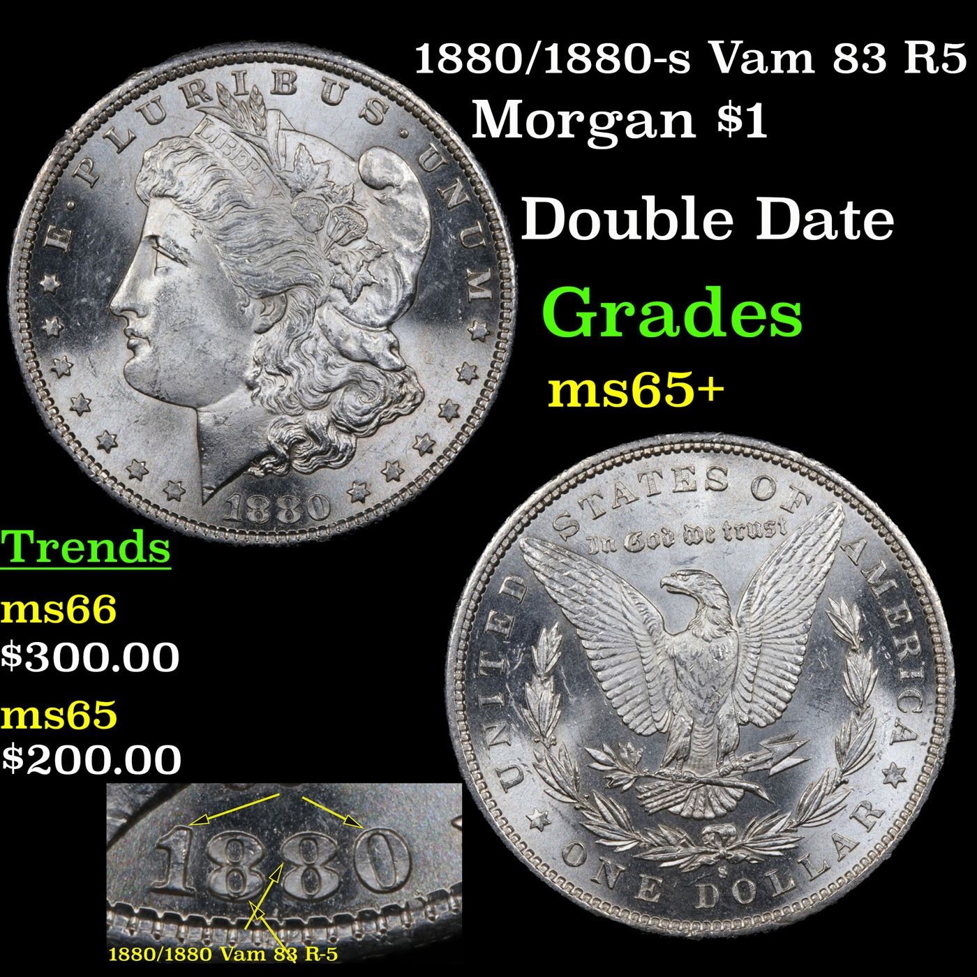 1880/1880-s Vam 83 R5 Morgan Dollar $1 Grades GEM+ Unc.