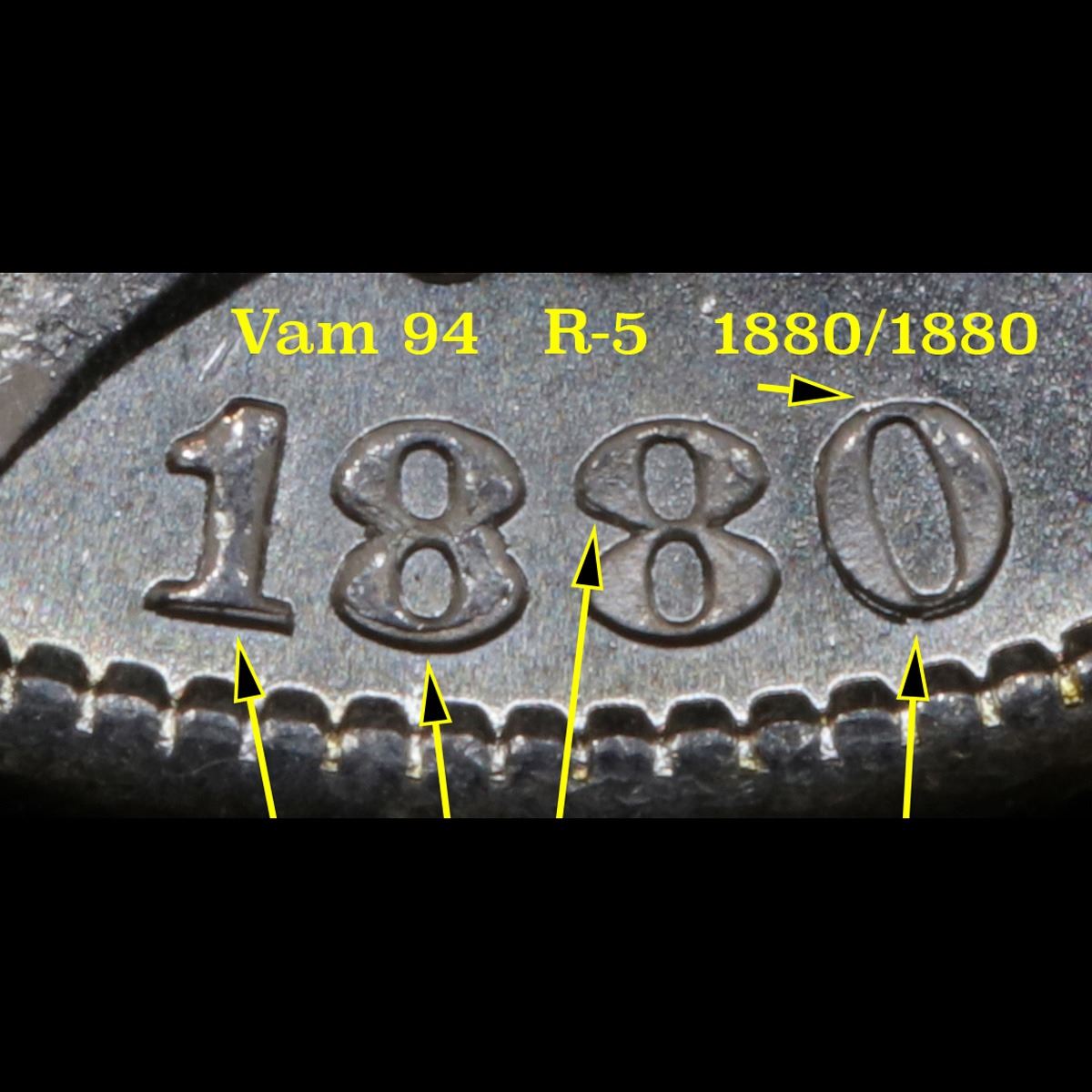 1880/1880-s Vam 94 Morgan Dollar $1 Grades Choice Unc+ PL.