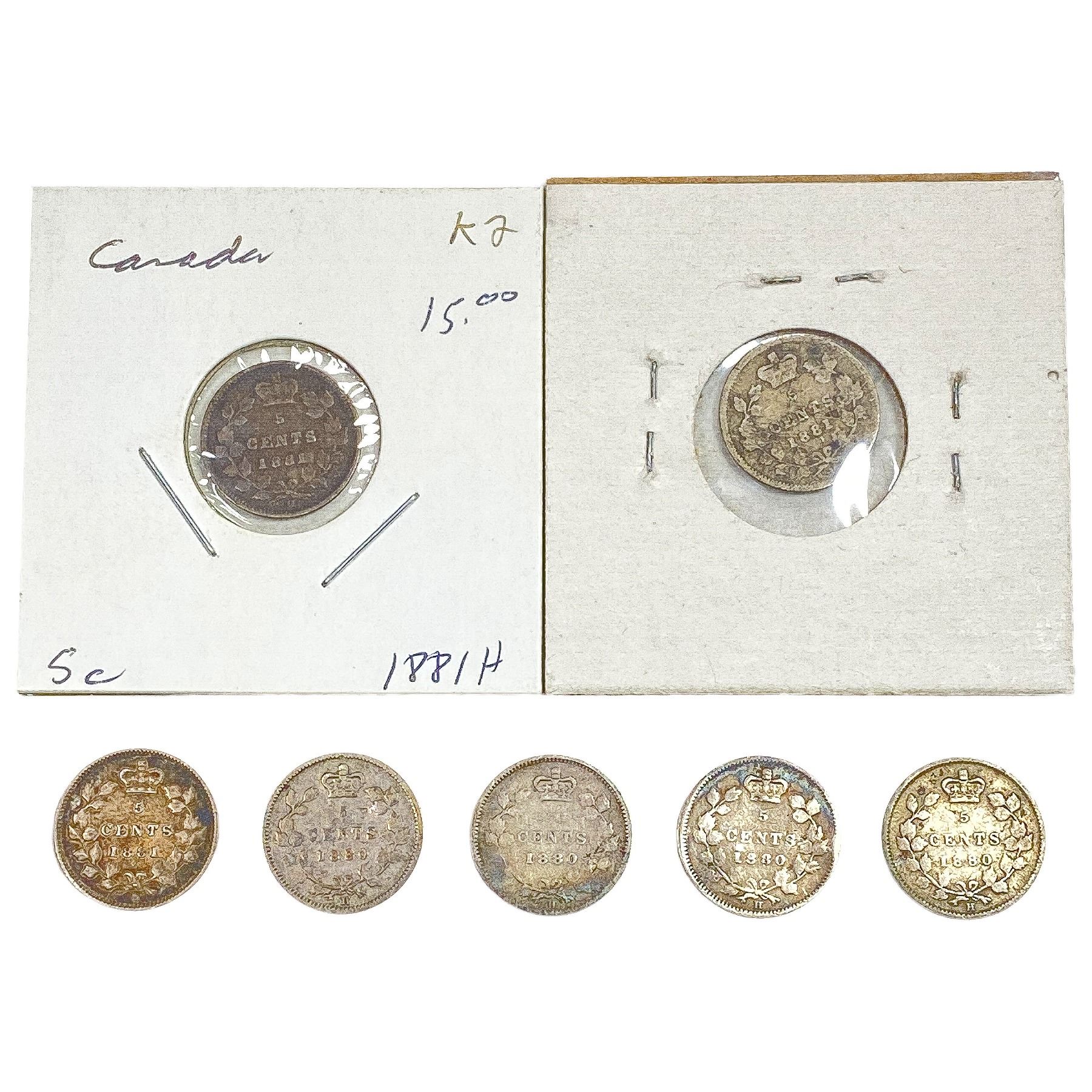 1880-1881 Better Date Canada 5 Cent Silver [7 Coins]