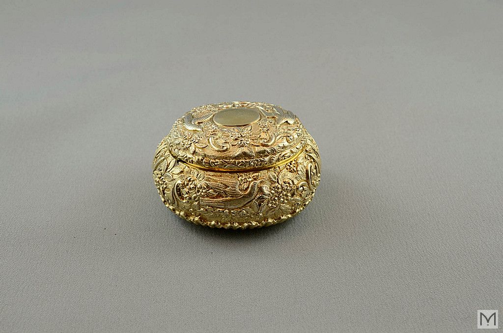 Antique 1880-1881 - Finely Repoussed and Chased Gilt Sterling Hinged Jewel Casket.