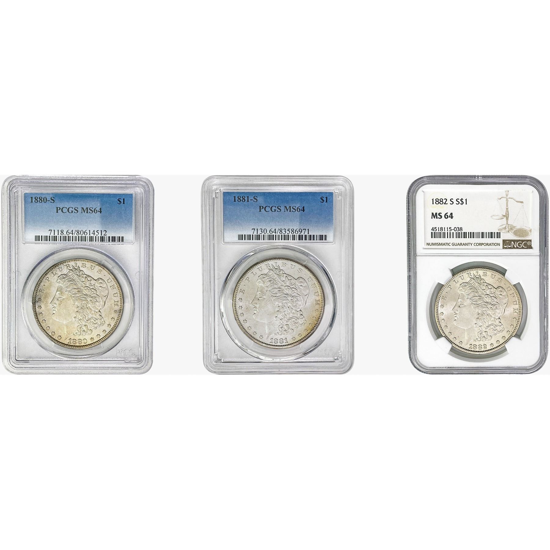1880-1882 Morgan Silver Dollar Lot [3 Coins] PCGS/NGC MS64