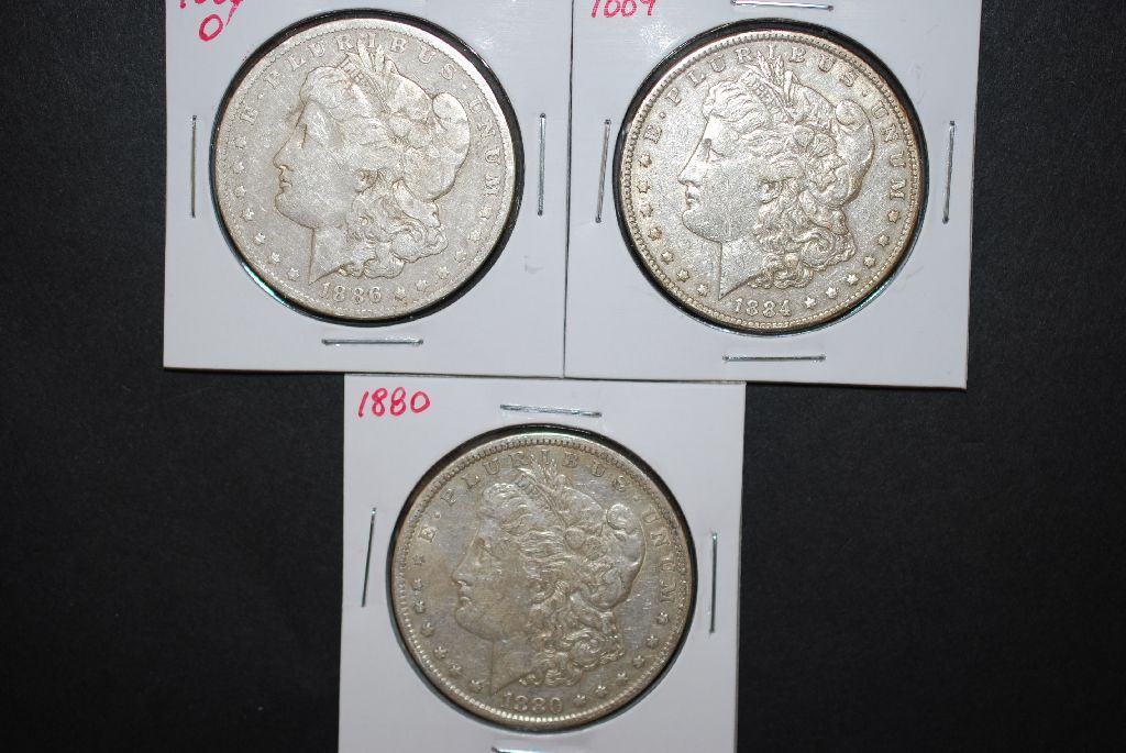 1880, 1884 & 1886-O US Silver Morgan $1; Lot of 3; EST. $100-125
