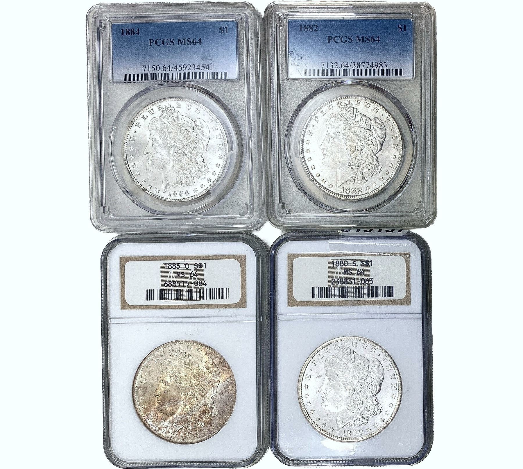 1880-1885 GEM BU Morgan Silver Dollar[4Coins] PCGS/NGC MS64