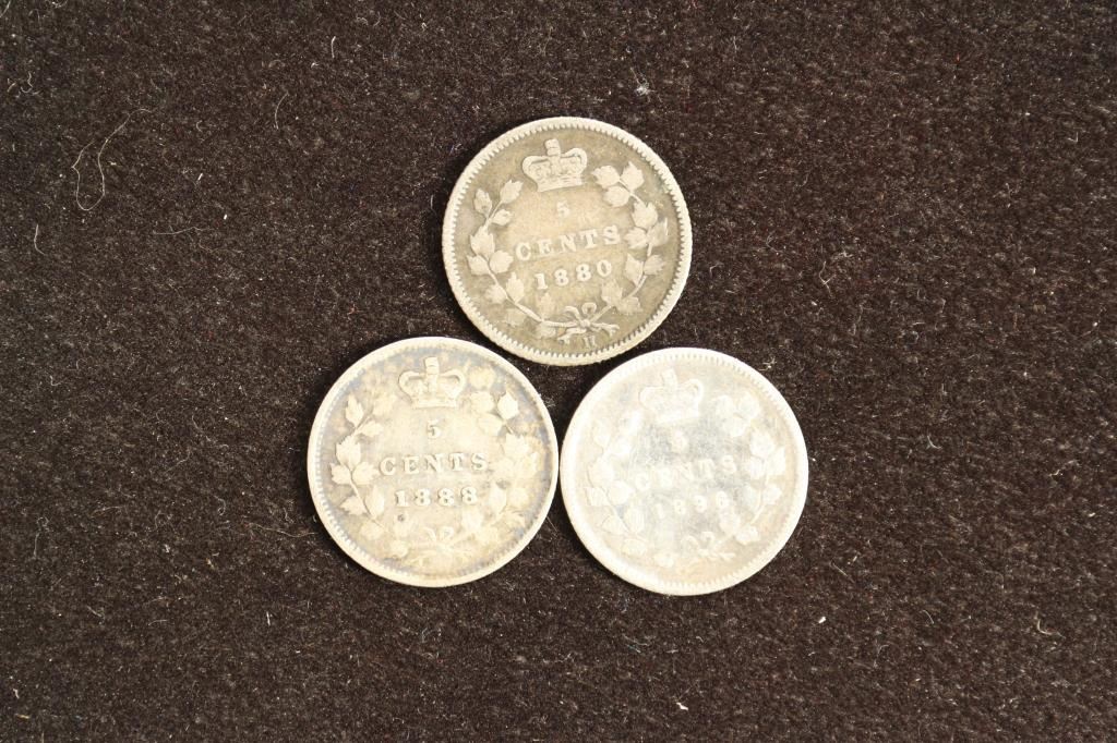 1880,1888 & 1896 CANADA SILVER 5 CENTS