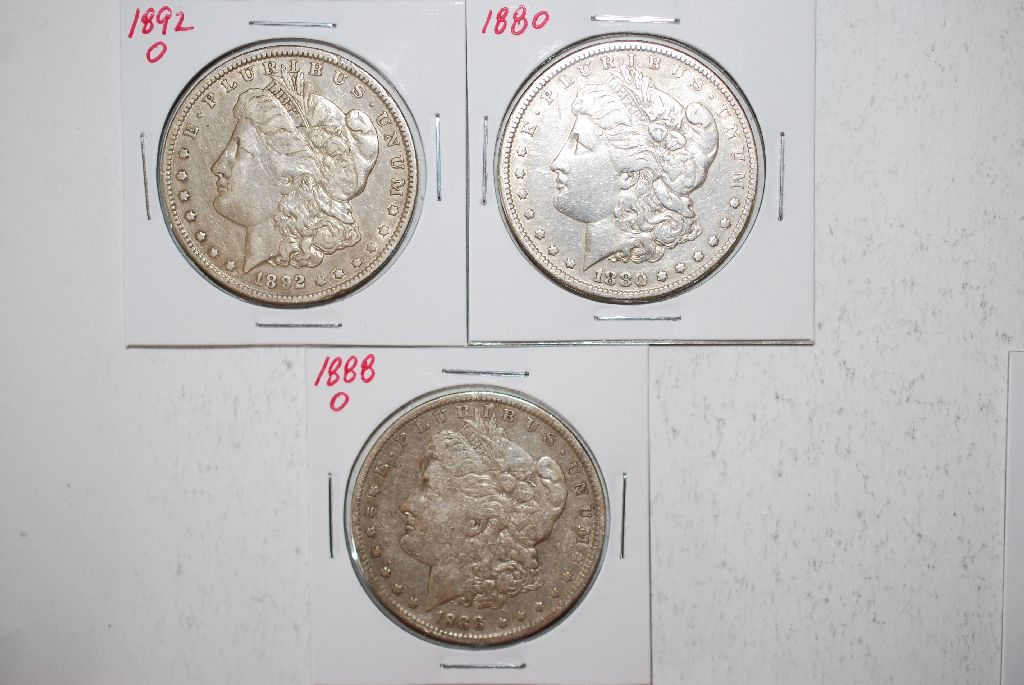 1880, 1888-O & 1892-O Silver Morgan $1; Lot of 3; EST. $100-125