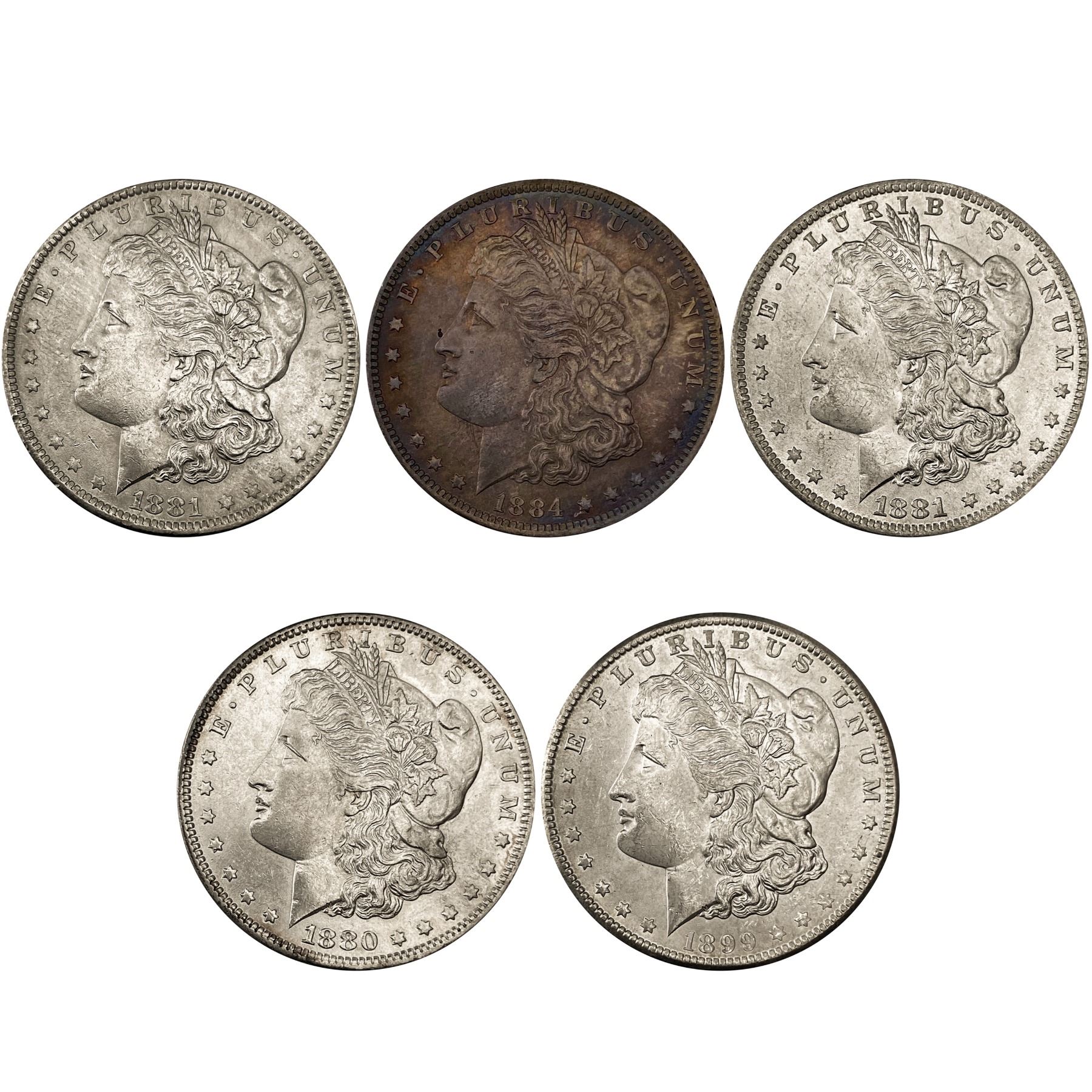1880-1899 BU Morgan SIlver Dollar Lot [5 Coins]