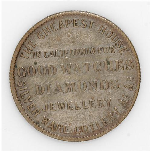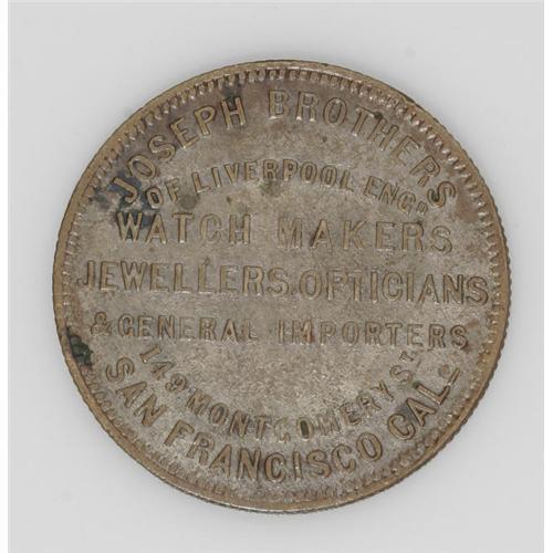 <B>Uncertified Group Lot.</B></I> Includes three tokens: Vaughan's Seed Store, Chicago, Illinois, II-Ch-78; a trade token from Child's & Co., Chicago, II-Ch-14a; and Joseph Brothers, San Francisco, California, silvered copper, Calif-6a, circa 1854-60. Viewing is recommended.
