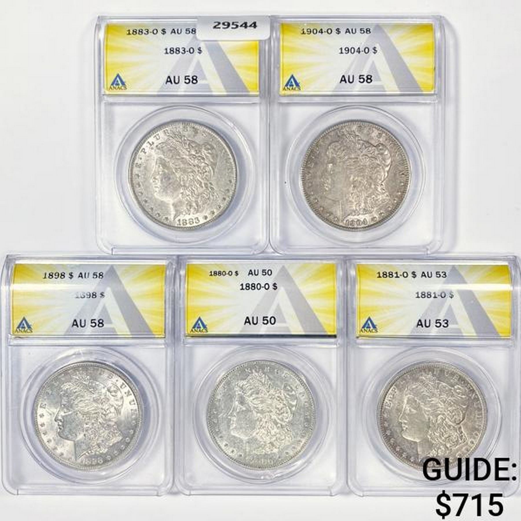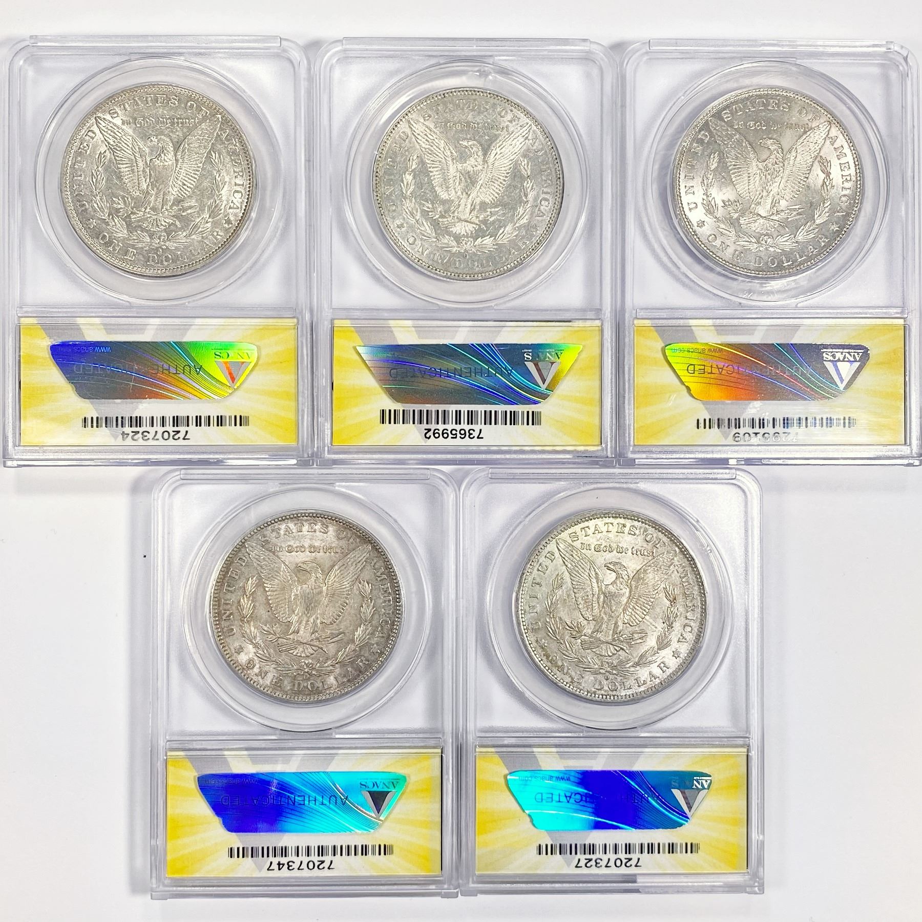 1880-1904 Set (5) Morgan Silver Dollar ANACS AU