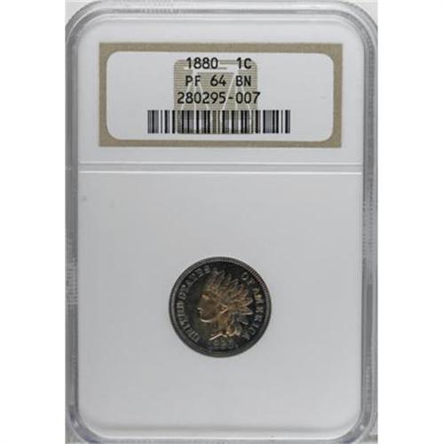 <B>1880 1C PR64 Brown NGC.</B></I> NGC Census: (25/28). PCGS Population (16/13). Mintage: 3,955. Numismedia Wsl. Price for NGC/PCGS coin in PR64: $160. (#2327)<BR><BR><B>Coin Engraver:</B> James B. Longacre<BR><BR><b>Shipping:</b> Coins & Currency (<a target="_blank" href="http://www.heritageauctions.com/common/shipping.php">view shipping information</a>)