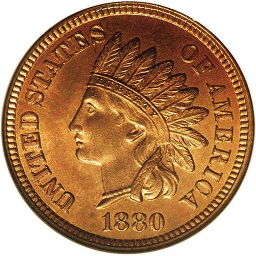 <B>1880<1C> MS66 Red NGC.</B></I> A relatively obtainable date in lower grades, any 1880 cent that grades as high as MS66 Red must be considered among the finest extant representatives of the issue. Frosty in texture, the orange-red surfaces are awash in full, rich mint luster that highlights the needle sharp striking detail. Some light spotting is confined mostly to the reverse, and should not be considered a detracting factor on this beautiful coin. Census: 7 in 66, 0 finer (4/06).