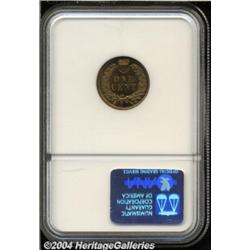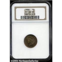 <B>1880<1C> PR64 Red NGC.</B></I> Coppery-red patina adheres to each side of this sharply struck proof Indian cent. The bright surfaces reveal only a couple of light, hardly noticeable marks. <BR><BR><B>Important notice:</B> Heritage usually auctions material at the rate of 200-250 lots per hour. On some occasions eBay Live bid software or the Internet may not be able to keep up with the pace of the auction. We recommend placing a realistic absentee bid now as insurance to avoid disappointment. Occasionally the auctioneer may eliminate or reject an eBay Live bid, and the auctioneer may also reopen a lot after the close of the eBay live bidding (usually because we missed an audience bid), and may reject your bid even if it shows you as the winning bidder. By bidding via eBay Live, you agree that Heritage may award the lot to another bidder at its sole discretion under the circumstances described above or any other reasonable circumstances. Since eBay bids are not shown to us until we open the lot on the floor, we treat those bids just like floor bids. In most cases the floor responds before the eBay bid is presented to us, due to Internet lag time, so for consistency we have made it a policy that floor bids are always considered first over tie eBay live bids. Also please note that all Heritage lots purchased through eBay Live carry a 20% Buyer's Premium. Please make sure you read the Terms and Conditions before you bid. </span></font></tr></table></td></tr></table>