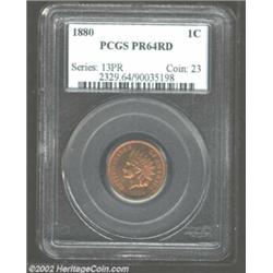 1880 1C PR64 Red PCGS. A few flecks of carbon are noted on this attractive proof issue. A hint of fr