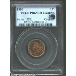 1880 1C PR65 Cameo PCGS. Eagle Eye Photo Seal. Snow-1. This interesting variety shows a defective date punch with broken 8s over regular 8s--this same die was also used to strike some business strikes. This splendid cameo shows sharply contrasting devices against the deeply mirrored fields. Even red color covers the surfaces of this high-end Gem.From the "Newmismatist" Collection; the All-Time #1 PCGS Registry Set. Important notice: We expect to be auctioning lots at the rate of 200-250 per hour. Sometimes eBay Premier live bid software cannot keep up with that pace, so we strongly recommend that you place a realistic proxy bid now as insurance to avoid disappointment. Also please note that all Heritage/CAA lots purchased through eBay Premier carry a 20% Buyer's Premium. Please make sure you read the Terms and Conditions.